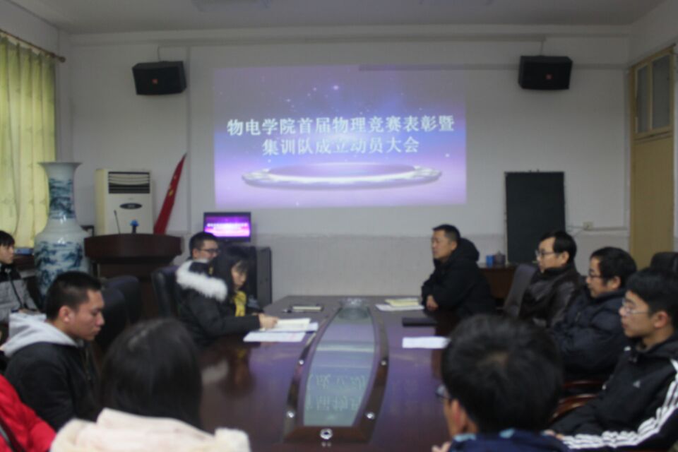 公司首届物理竞赛自2017年12月17日下午在八教1-1举办比赛、25日角出刘大东等28名优秀同学,到此已完美收官。2018年1月5日上午10:00在物理楼二楼会议室举行了竞赛表彰暨集训队成立动员大会。出席大会的有副经理刘明伟、公司党委副书记杜鑫、院实验中心主任何雄辉老师、院创新创业实践中心谭长海老师和学工办孙婵老师。本次会议由孙婵老师主持。
