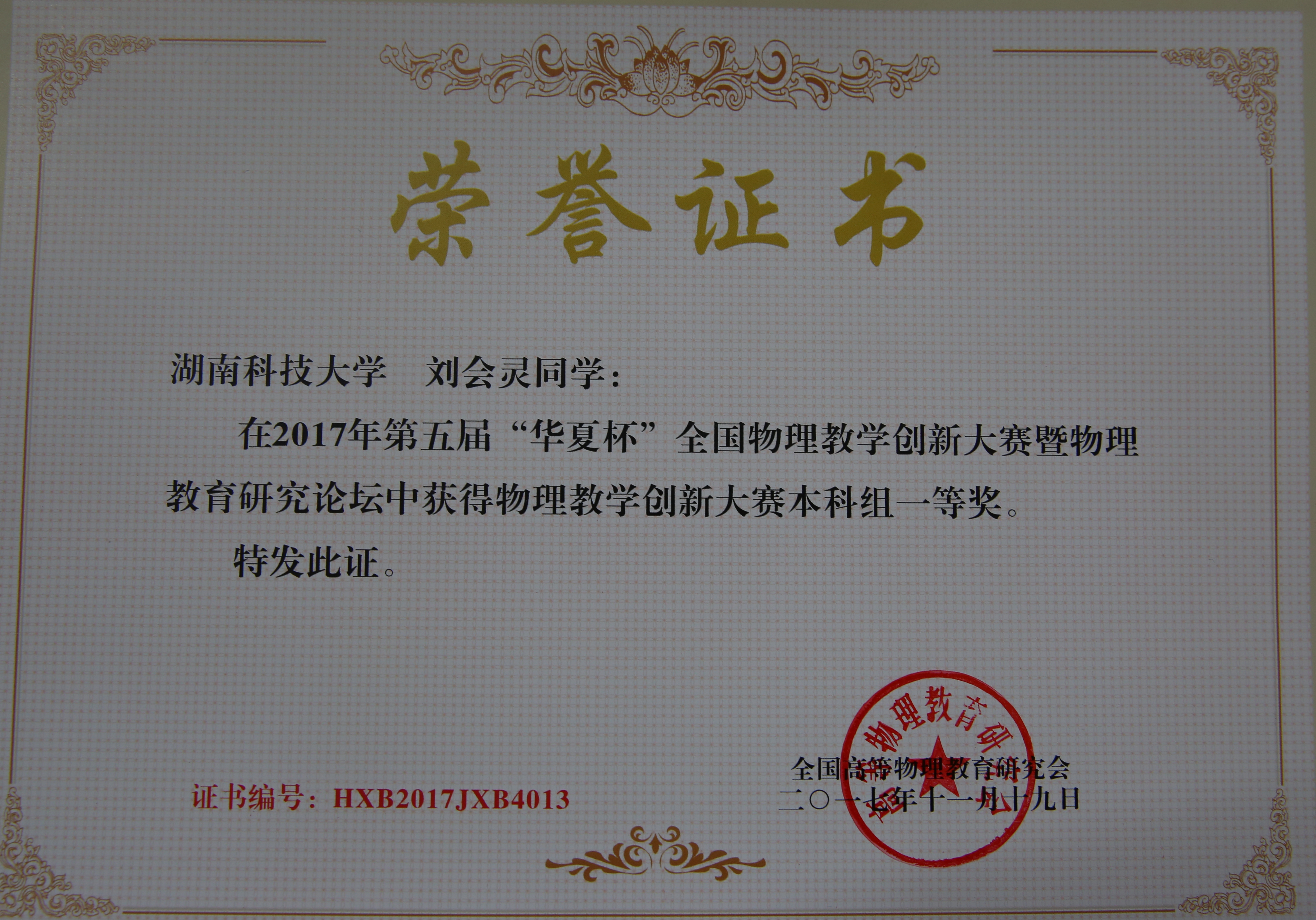 11月17-19日,第五届“华夏杯”全国物理教学创新大赛暨物理教育研究论坛在湖南师范大学举行,代表公司参赛的yl234114名选手均取得了优异的成绩,其中刘会灵荣获本科组一等奖,赵宇航荣获本科组三等奖,杜静、卢小芳分别荣获研究生组二等奖、三等奖。