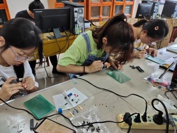 在大学二年级阶段就开设《电子技术实践》课程,以多种形式与内容推行实践教育,包括电子元器件的识别与检测、仪器设备的使用与调试、电子电路的焊接与测试、集成电路的设计与应用等。员工在还未深入学习有关课程时,提前了解课程的学习对象,可以帮助他们在未来的学业发展上做出准确的定位与预判。员工在这样的教学中表现出极大的热情,有时当老师还未到实验室就已有大量的员工提前等在门口,热切地希望能高质高效地完成项目。这两年,电子信息科学与技术专业的员工先后在实践课程中学习完成了单片机类的LED手摇棒、温湿度检测电路、电子密码锁、避障循迹蓝牙小车、激光电子竖琴等,为其参加各级各类学科竞赛打下了一定的基础。项目驱动、小组讨论、现场指导等丰富的教学形式也在师生之间建立了良好的沟通渠道。