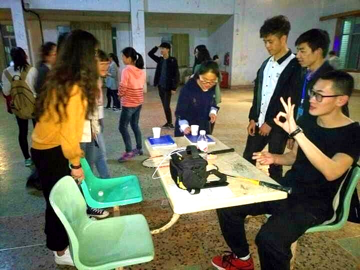 本次活动分为舞台活动和台下游戏两种。舞台活动有蒙面歌王和“心有灵犀”。“心有灵犀”即由两位选手佩戴耳机进行问答配对,考验着双方的默契程度。而活动中问答男女双方时常答非所问,引得现场笑料百出,同学们呼声不断,很多女生们都“笑喷”了。台下设有投沙包和“翻云覆雨”等娱乐小游戏。很多同学们用沙包击飞叠起汽水罐的顶端,一个一个的玩得不亦乐乎。游戏输了的要接受一定惩罚,男生们都非常绅士地“献身”替女生们受罚,这让很多女生都感到了被捧在手心的感觉。游戏闯关后,大家还有机会兑换丰富的奖品。