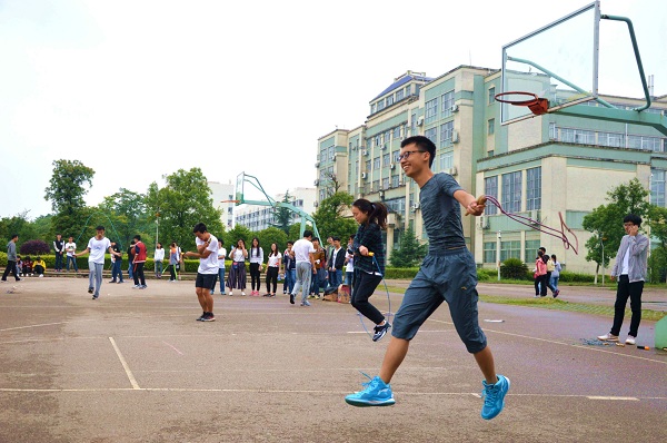本次比赛分为长绳8字跳,60秒速度单摇和花式跳绳三种形式,14、15级每两个班级分为一组,每组限时半小时。随着时间的推移,比赛在紧张的进行着,每位选手凭借着不服输的信念,使出浑身解数努力超越对手,比赛也进入了白炽化阶段。最让人佩服也最让人出乎意料的是,14级电教仅派出了两位选手参加比赛!两位选手代表全班同学,笑对其他班级的强大队伍,毅然的完成了比赛。整个比赛过程中,加油声、欢呼声不断,每位选手和观众的脸上都洋溢笑容。最后,在此次比赛的最终评比结果中,14级电教班和15级物理一班获得长绳“8”字跳第一名,14级电子二班、15级电子三班则获得团体花样跳绳第一名,其中还有单摇跳,个人花样跳等个人奖项。