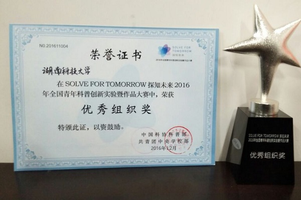 公司获全国青年科普创新实验暨作品大赛优秀组织奖