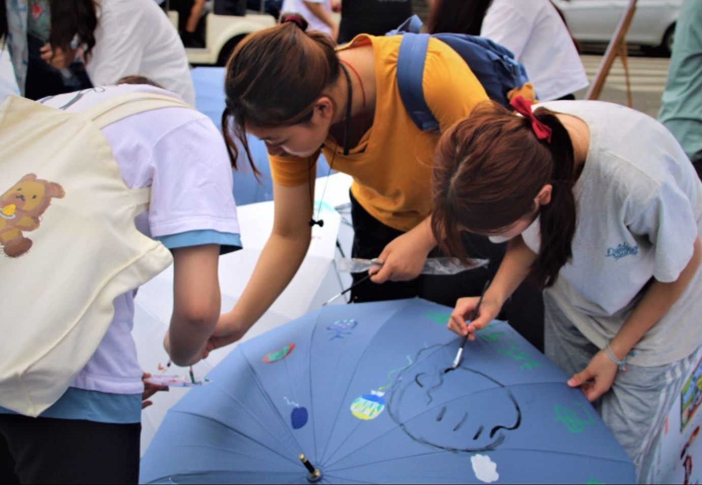 “六月天,孩儿面”,六月的雨说来就来,一把把DIY手工诚信伞,在淅淅沥沥的大雨中显得格外醒目,赠予玫瑰,手留余香,爱心传递,诚信绵长。诚信伞收回之后,将在物理楼一楼设专点,随时为广大师生提供便利。现场点歌、诚信知识抢答等小活动将气氛一次次推向高潮,围观的同学一拨又一拨地你来我往,十分热闹。工作人员一边宣讲诚信贷款等相关国家资助政策,一边请大家在“喜迎建党百年,争做诚信青年”的横幅上签字,并合影留念。公司党委副书记杜鑫,学工办老师任朋飞、高淑兰出席此次活动。
