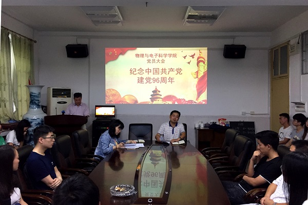 为纪念建党96周年,2017年6月30日下午4:30,公司党员大会于物理楼二楼会议室顺利召开。本次大会到场的有公司党委书记周文革同志、党委副书记杜鑫同志、学工办老师孙婵老师,以及yl23411五十七名员工党员。党委副书记杜鑫同志主持本次会议。