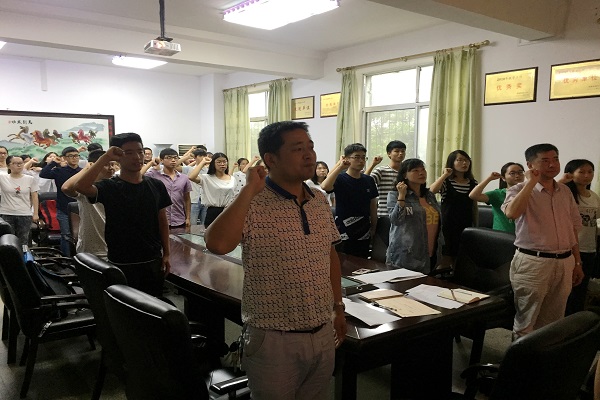 正值建党96周年到来之际,在领誓人的带领下新发展员工党员进行了庄严的宣誓,其他党员重温了入党誓词,将入党誓词再一次深深烙印在每一个党员心中。员工党员代表罗秀坤同志回顾了建党96周年来中国共产党的发展历程,以及强调了作为一名员工党员应注重提升自身综合素质和党性修养。最后,公司党委书记周文革同志上台做重要讲话,讲话中对党员同志们提出了三点要求,分别是坚定自己的理想信念、高度自觉学习以及要主动提高自己的能力。还强调每一名党员都是一盏灯、一面旗,要始终起到先锋模范作用,为党的伟大事业奋斗终身。