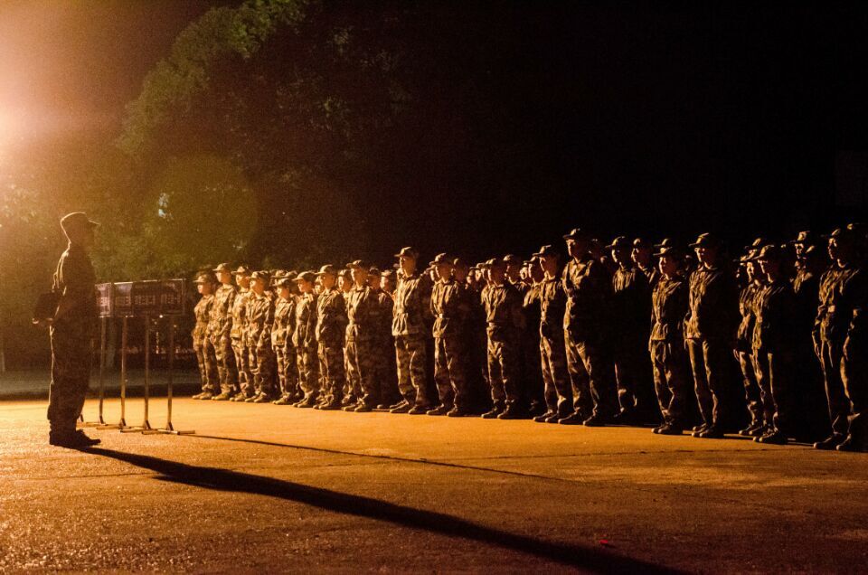 夜幕笼罩下,公司2017级全体受训学员庄严肃穆,迅速列队集合。“报告!四营三连集合完毕,请指示!”随后,党委副书记杜鑫面向全体2017级受训学员发表讲话。杜鑫副书记首先强调了军训的必要性和重要性,要求全体学员学习人民军队坚强意志和优良作风,锻炼吃苦耐劳精神、增强集体荣誉感;他希望同学们珍惜军训的机会,积极投身到军训中,不畏苦难。他向同学们提出了“七过硬”的要求,期望他们积极配合教官训练,圆满完成军训,以优异的成绩向党的十九大献礼。