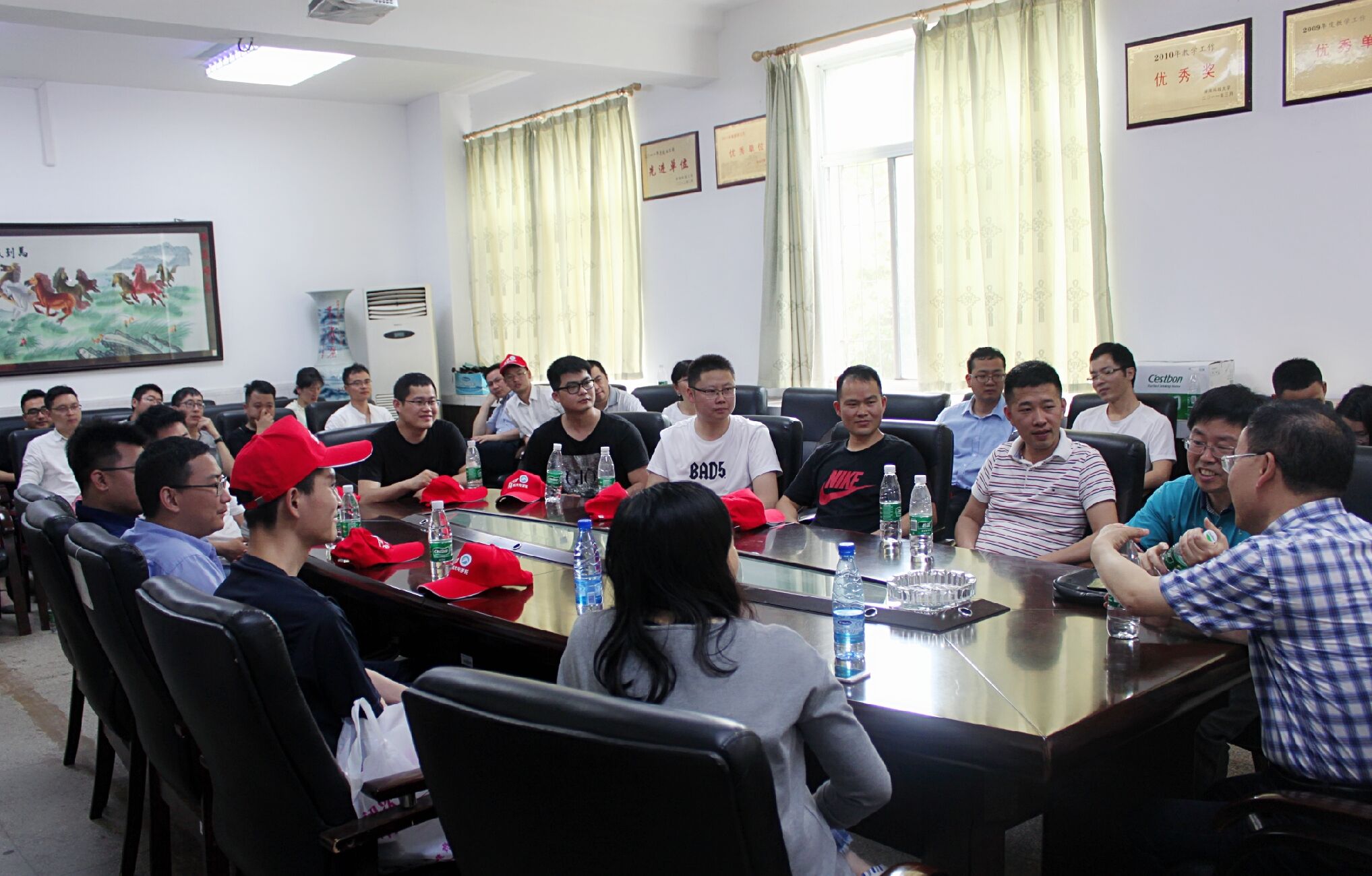 4月30日,天朗气清,阳光明媚,“五一”国际劳动节前夕,yl234112004级电子系毕业生回到了阔别十年的母校,探望恩师,聚会同窗。yl23411王俊年经理、吴伶锡教授和学工办孙婵主任在物理楼会议室隆重接待了他们。