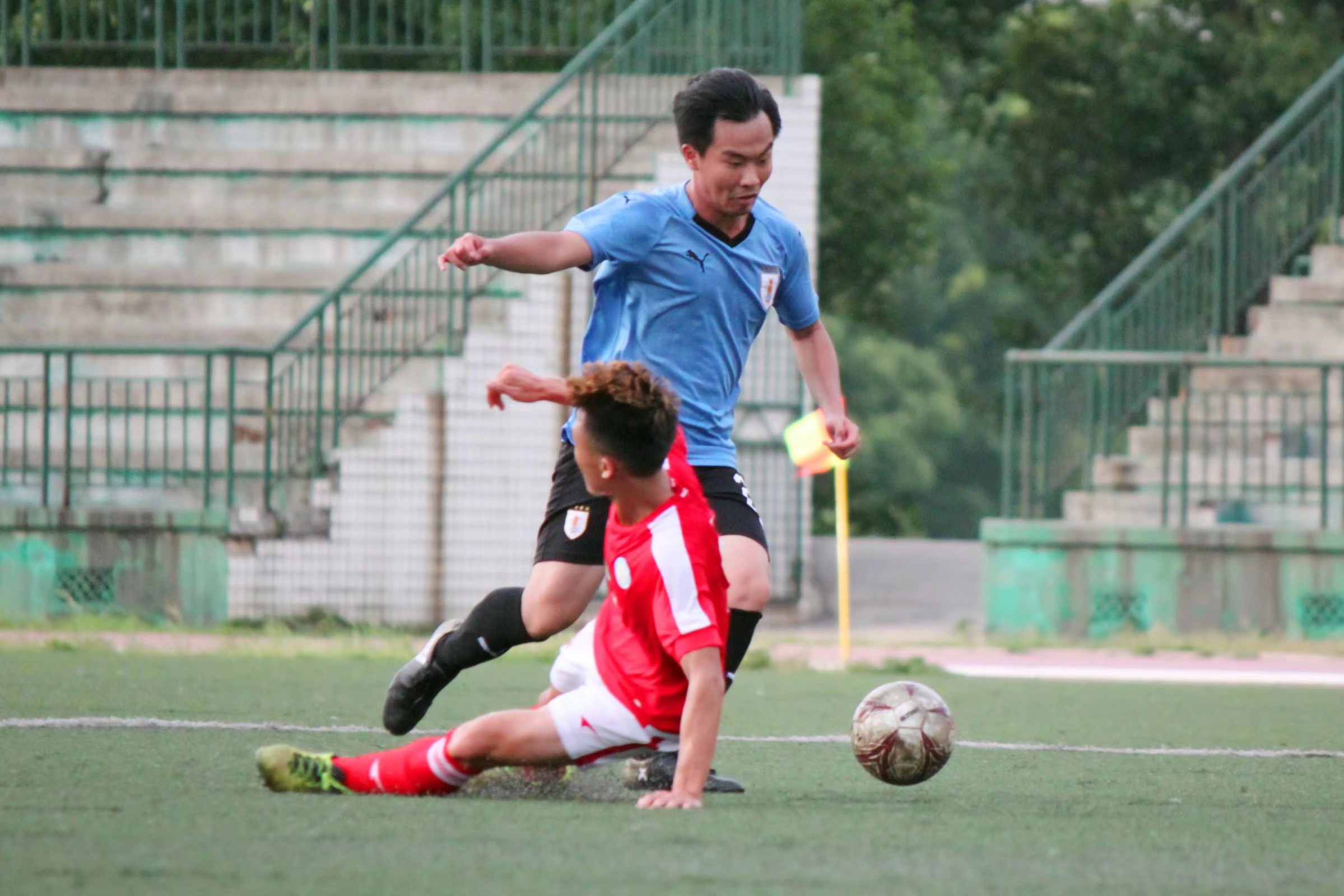 下半场比赛的较量,体育公司球员加强进攻,频频上压,力图破门得分,而物电男足防守稳健,在顶住对手的几次强烈进攻后,耐心传球,积极跑位;物电守门员判断准确,频频将球扑出,成功化解几次体院球员的进球危机,但仍让体院球员射中一球。体育公司的球员凭借专业的技术和更胜一筹的体力,在混战中成功又进一球。最终,公司以1:2惜败于体育公司,但是公司与体育公司并列取得了第一名。