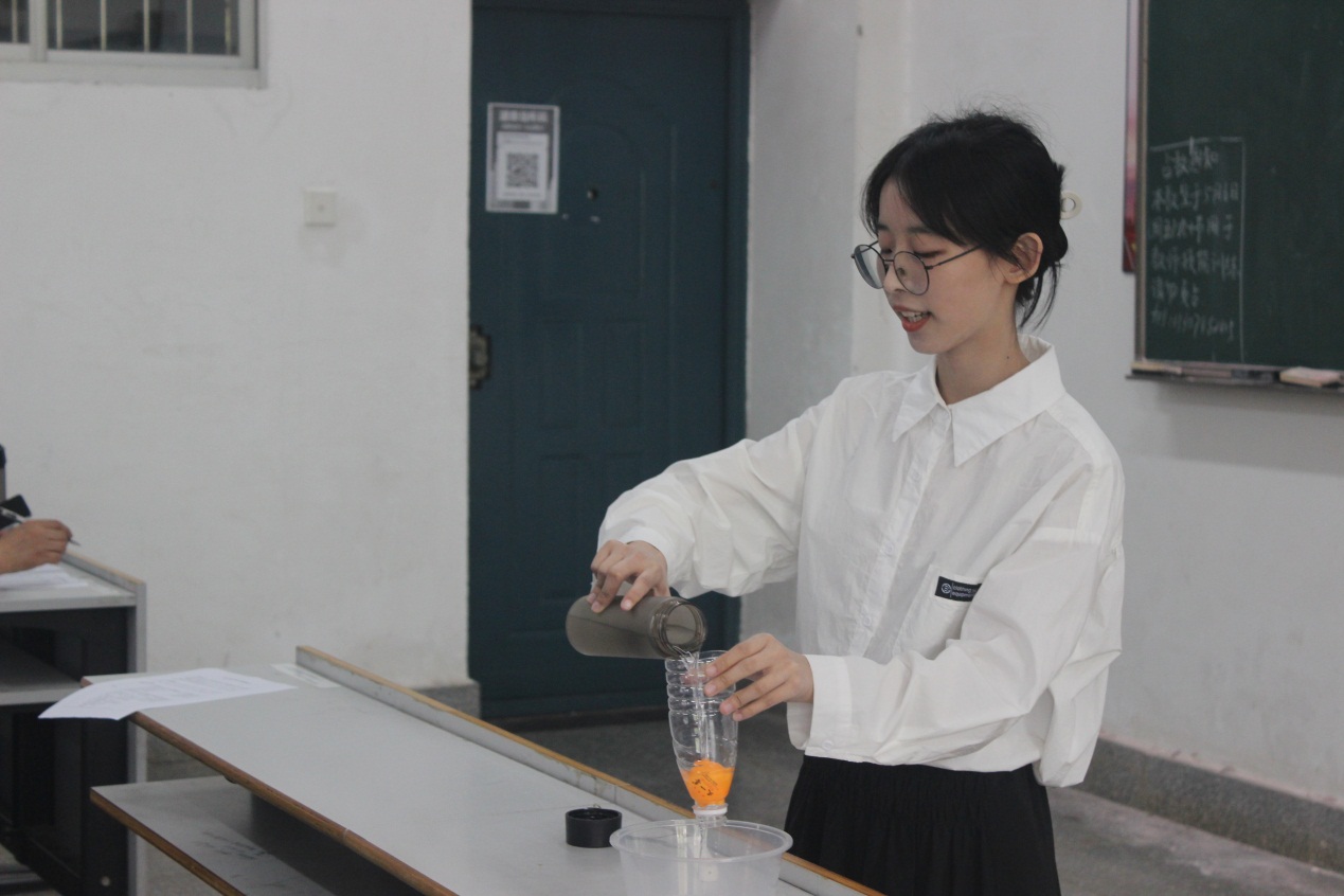 本次教学技能竞赛从教案、板书、语言、教态、教学技能、教学内容等6个方面对选手进行综合考核。在比赛过程中,参赛选手们赛出水平、赛出自我,朝气蓬勃,充满活力,语言表达流畅、教学思路清晰、教学内容丰富、课堂教学组织灵活多样,展示了不同的风格和特色。富有创意的实验设计、道具和多媒体的合理运用,让比赛过程精彩丰富。